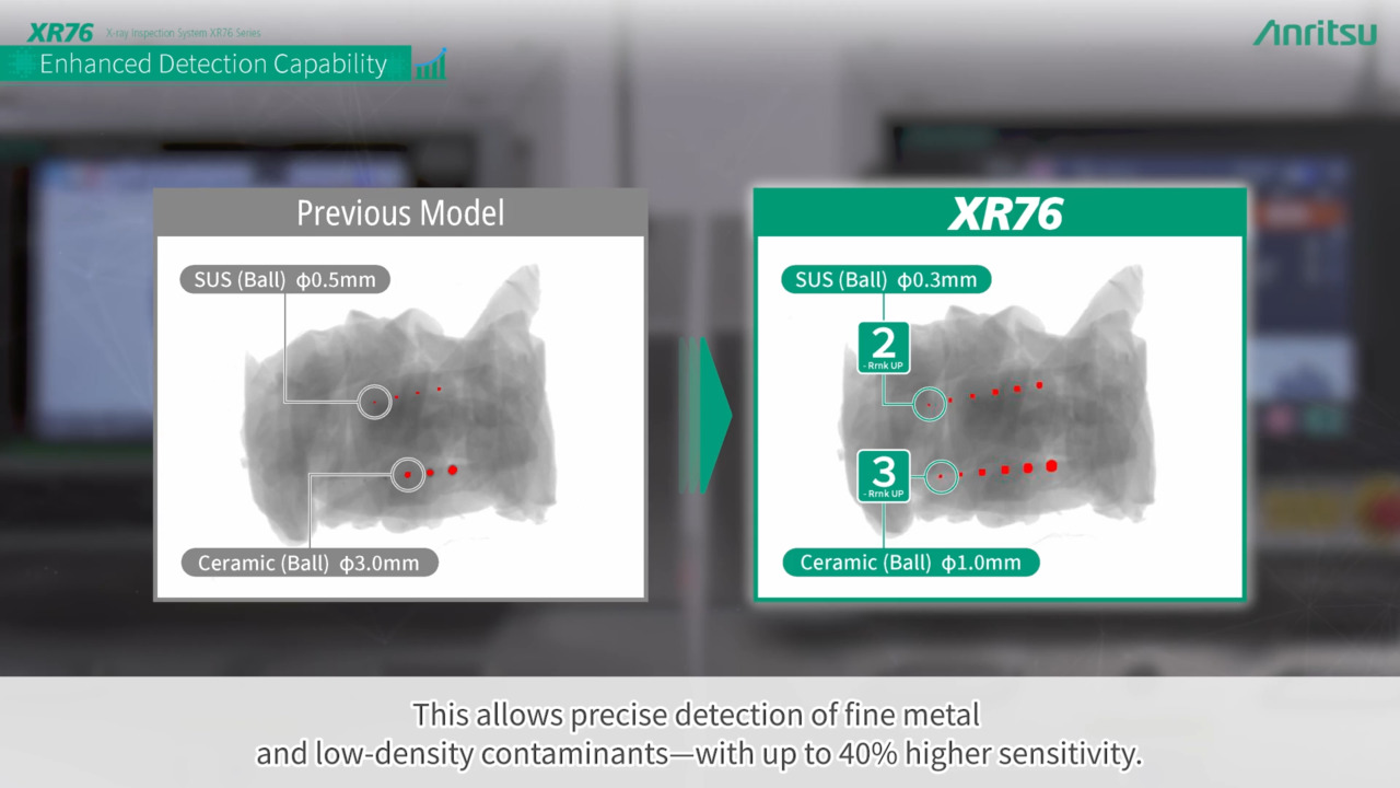 Discover the enhanced detection capabilities of the XR76 series, equipped with a newly developed X-ray sensor. This video highlights the significant improvement in contaminant detection sensitivity compared to the previous model.